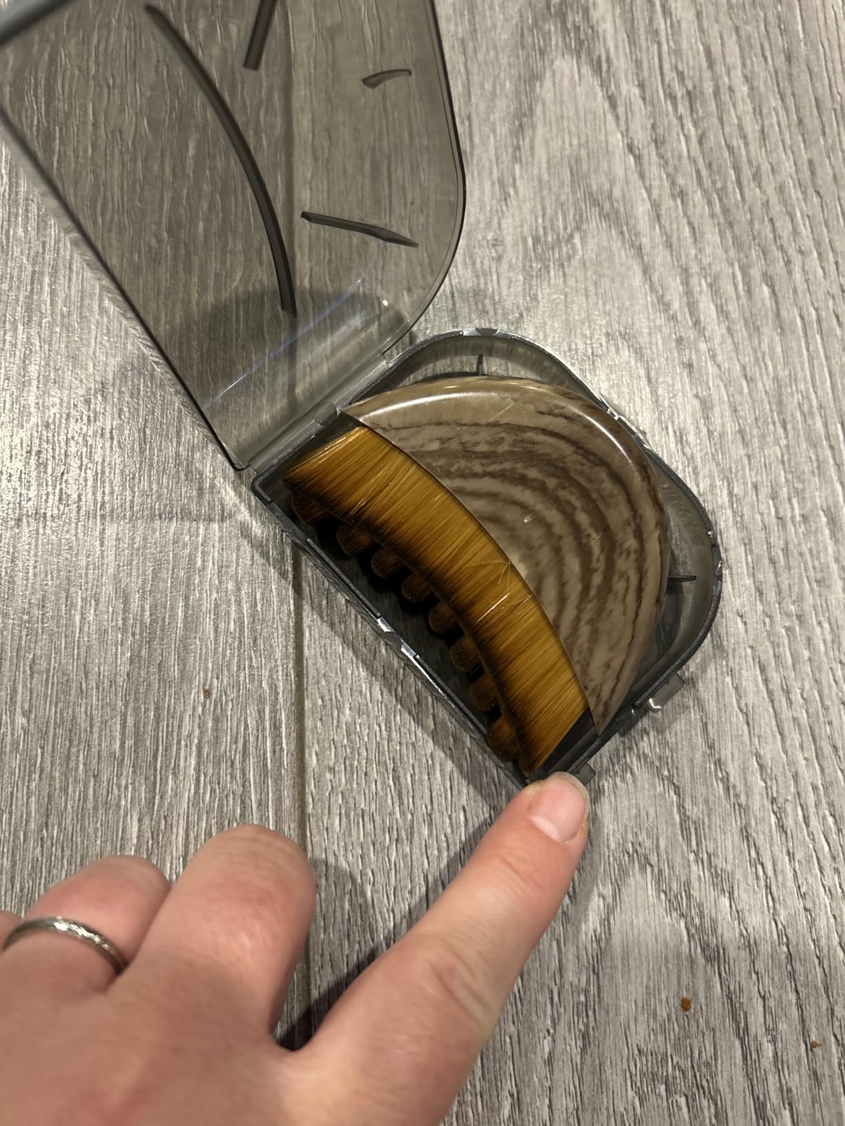 Rinse the bristles with warm water and mild soap after use, then let it air dry. Keep it in the included protective case to stay clean and dust-free.